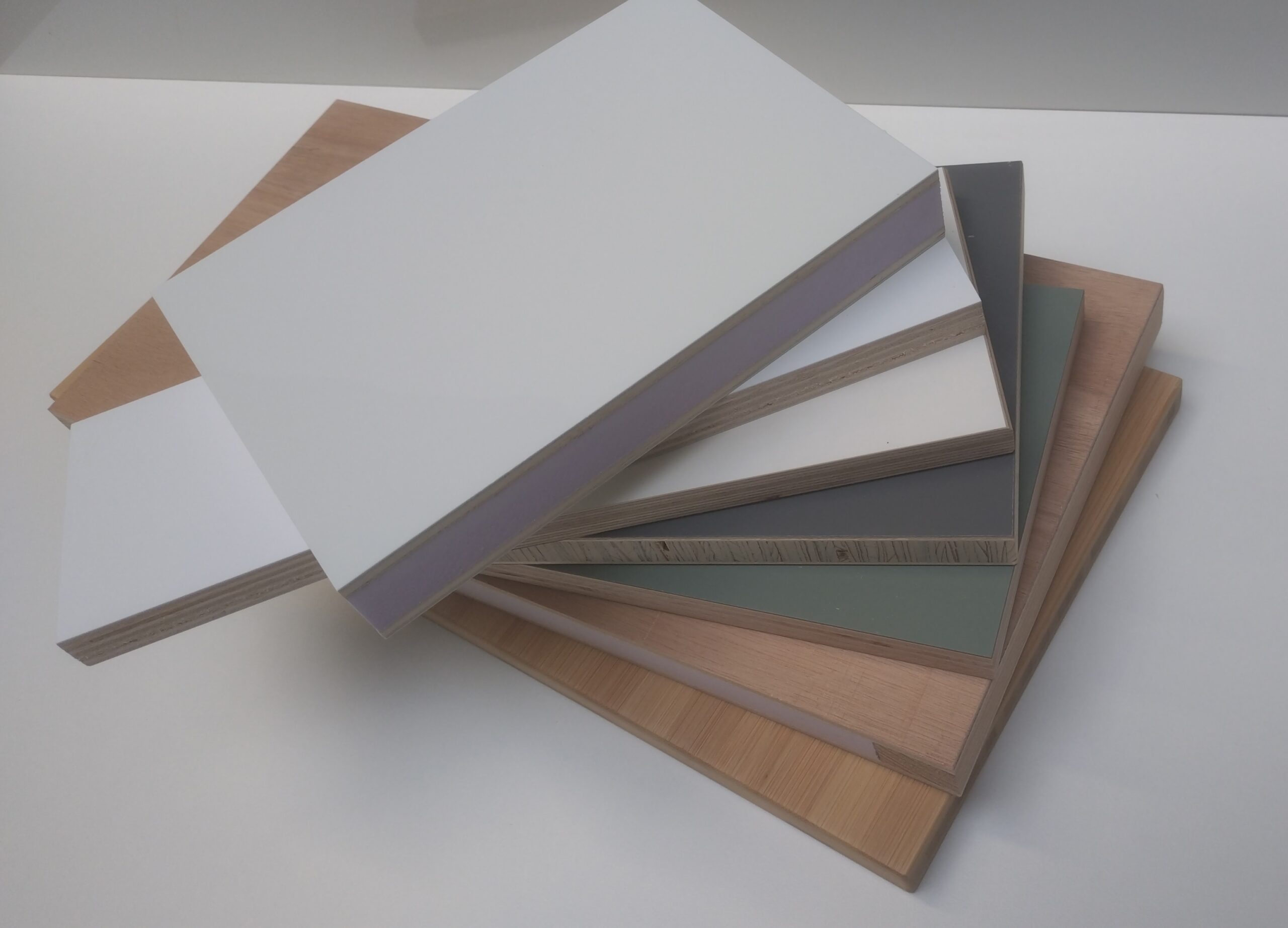 HPL Schichtstoff in Apfelgrün auf der einen und Tiefseeblau auf der anderen Seite? Echtholz-Eichenkante auf einer Pappelsperrholzplatte? Superleichte Hybridplatte mit Schaumkern und Holzdeck? Inlays zur besseren Krafteinleitung von Beschlägen? Können wir und machen wir Euch auch!
